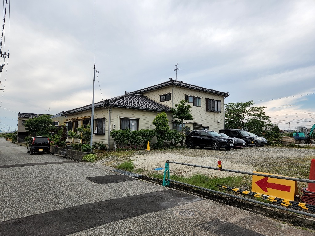 道路に面した出入り口は塞がってしまいます。写真の右下にある矢印に従って曲がって頂き、道路右側の駐車スペースに縦列駐車してください。ご迷惑をおかけしますが、よろしくお願い致します。