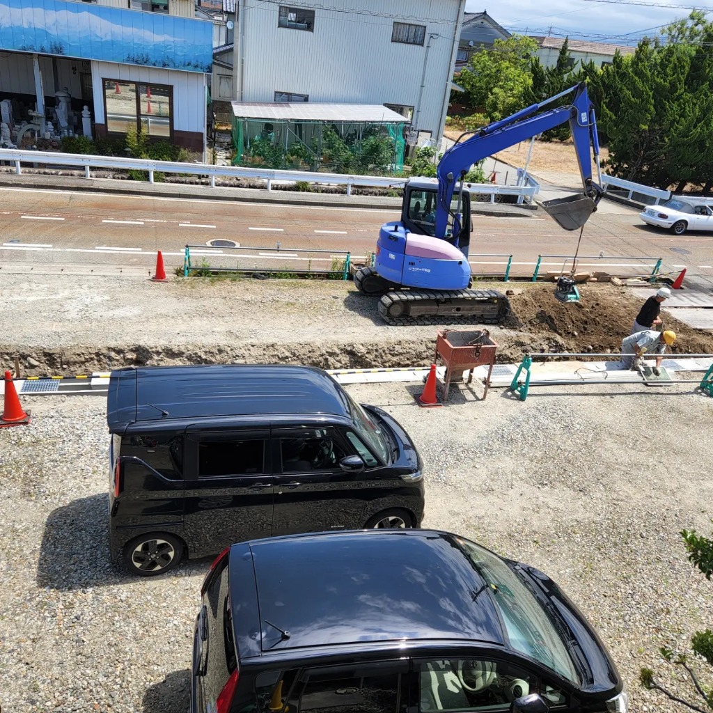 敷地内の工事進捗状況ですが、順調に進んでおります。ただ、地ならしもしなくてはならない状況にンりましたので来週の半ば頃までかかりそうです。皆様にはご不便ご迷惑をおかけしますが、何卒、よろしくお願い致します。